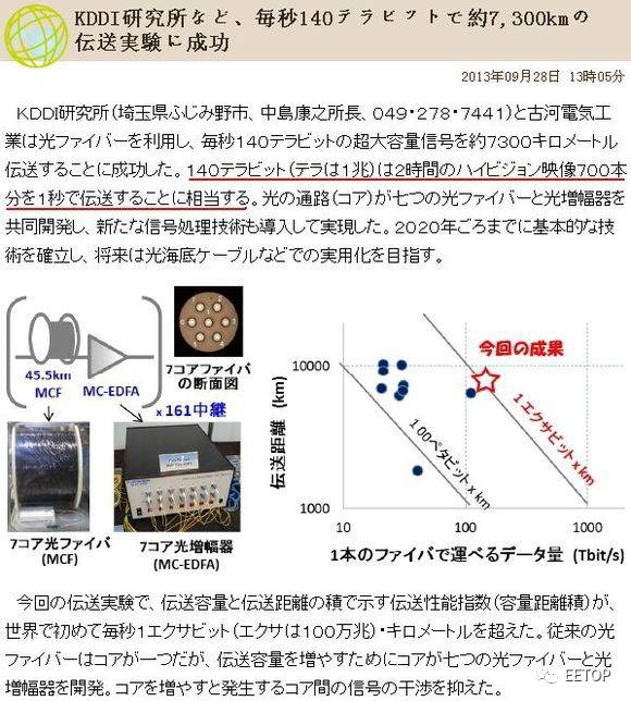 nict kddi研究所和古河电工在太平洋横断光纤传输实验中结合三方软硬技术,成功全球首次使单根光纤的容量距离积达到1Exabps 级别,打破了ntt先前保持的世界纪录