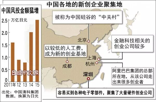 据悉,截至2016年9月,中国对新创企业的投资额已接近3万亿日元,超过2015年并再次刷新纪录。在投资额上是仅次于美国的“创业大国”。