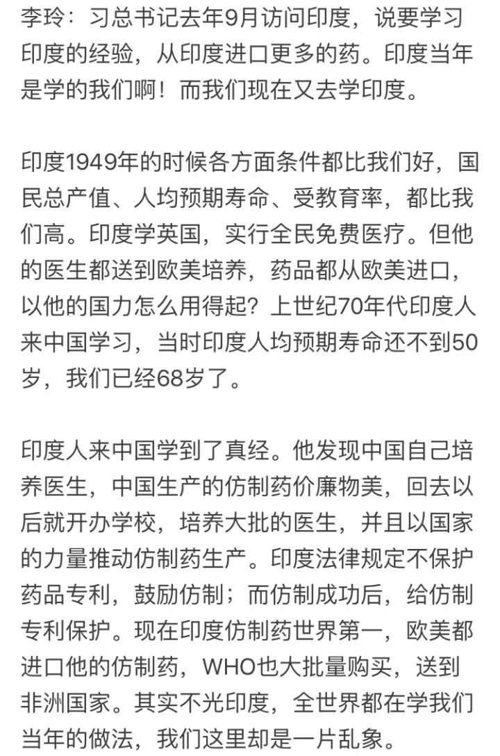 李玲:就是呀。所以我说,我们国家宏观治理出了问题。中国现在不缺钱,完全可以给老百姓提供不错的医疗,可是我们钱没花好。就算我们的医院不够,开办外资医院扩大供给,有几个外国医生能来?来个仨瓜俩枣的,还是得靠本土的医生,我们现在最缺的就是医生啊。