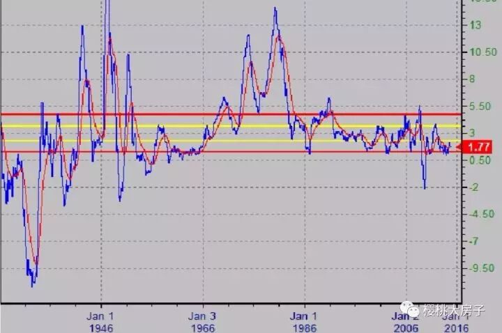 下图是美国自1926年到2016年的通胀指数: