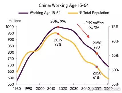 据测算,中国20-64岁劳动力与65岁以上老人之比将从2015年的6.5下降到2030年的3.3、2050年的1.7、2100年的1.1,人口结构不断老化,经济活力持续下降,而这些反过来可能进一步抑制生育水平。
