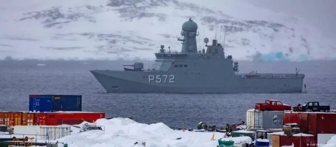 丹麦军舰在格陵兰岛水域巡逻图片来源: Odd Andersen/AFP