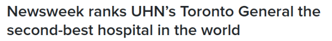 太牛了! 全球最佳医院排名: 多伦多全科医院荣登第二!