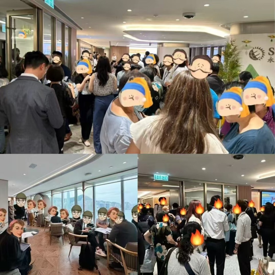 6月海港城三楼通往楼上保司的电梯厅排队情况,图源楼姐提供
