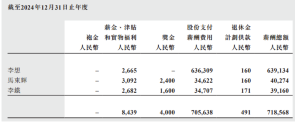 随后理想方面回应红星资本局称,“李想年薪6.39亿”的说法并不准确。理想汽车2024年年报显示,李想2024年的薪酬构成为:266.5万元人民币的薪金、津贴和实物福利,16万元人民币的退休金计划供款,以及6.36亿元人民币的股份支付薪酬费用,合计6.39亿元人民币。