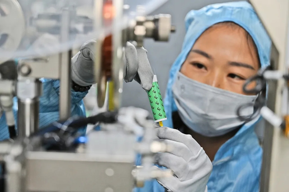 工人正在对锂离子电池进行自检