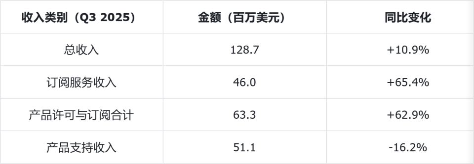 2025年第三季度,软件业务的总收入为1.287亿美元,同比增长10.9%,超出了市场预期。