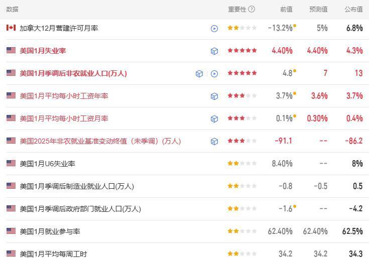 根据美国统计部门公布的最新数据显示,美国1月季调后非农就业人口增加13万人,预期7万人,前值由5万人修正为4.8万人。