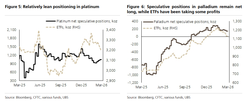 在其他贵金属方面,瑞银的整体判断同样维持不变。白银、铂金和钯金近期均处于整理阶段,价格承压,但考虑到全球经济增长放缓对工业需求的潜在拖累,这些工业属性更强的白色贵金属表现已属相对稳健。