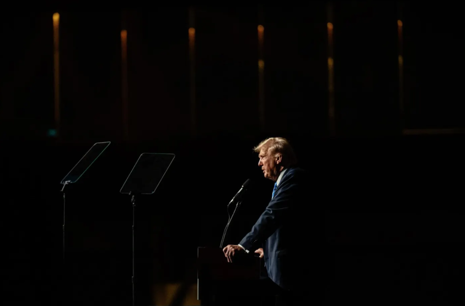 特朗普于2024年比特币大会上发表主题演讲,一年后成为全球最大的比特币投资者之一。| 图源:Jon Cherry/Getty Images