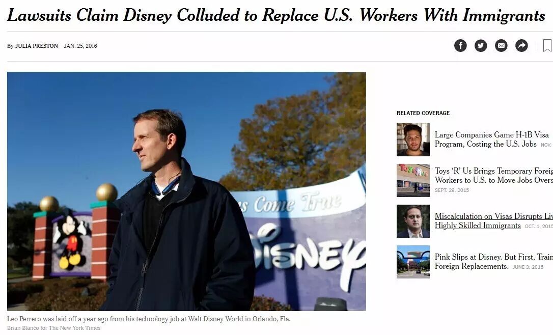 据悉,提出这项法案的动机也与迪士 尼公司(Disney )和南加州爱迪生公司(Southern California Edison) 发生的雇佣诉讼事件有关。两家公司都将自家的IT部门的运营权限外包给了印度公司,让廉价外国劳工抢夺本土饭碗,从而使正式员工的利益受损。