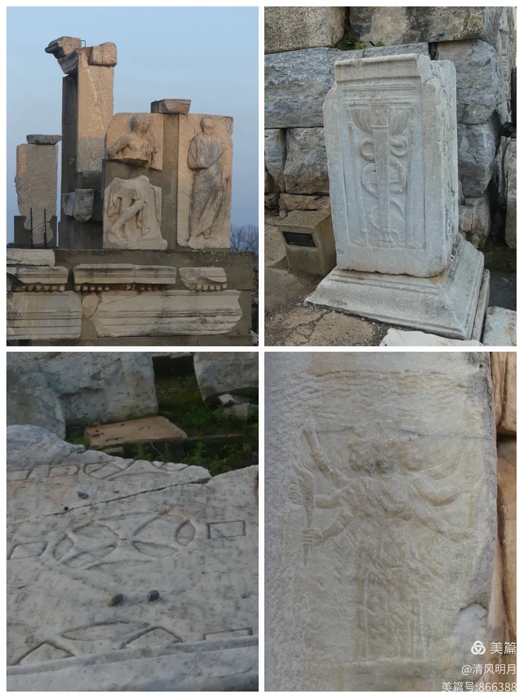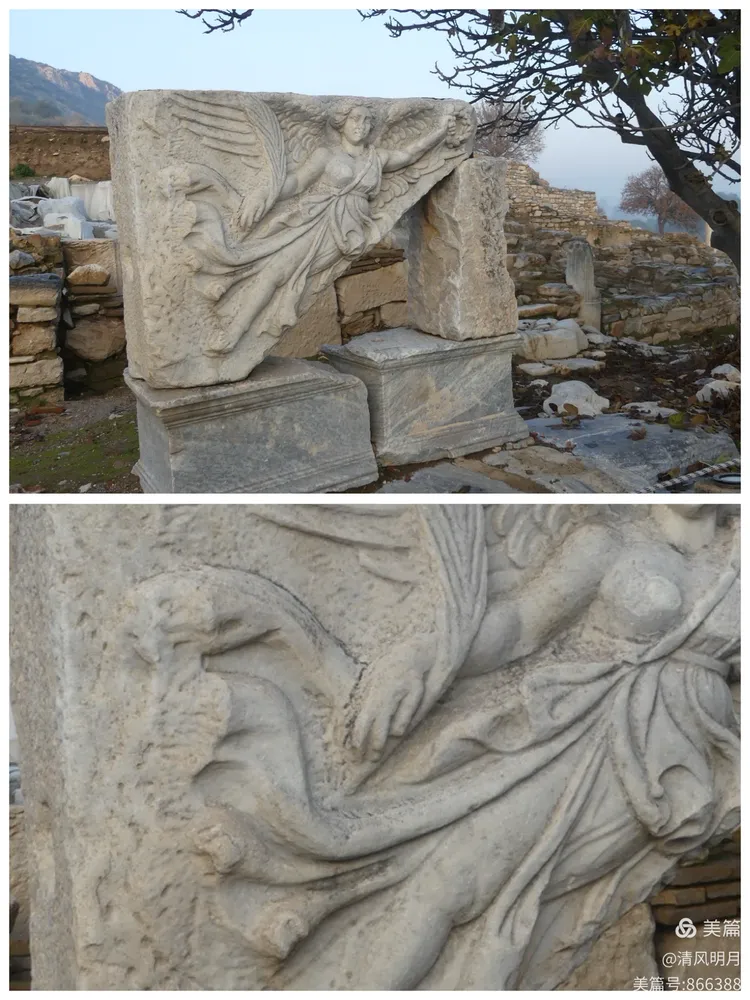 以弗所遗址里充满古代风光一时、象征帝国权威与荣耀的浮雕壁画——赫尔墨斯之杖、胜利女神的身影、王公贵族的雄姿——如今在漫长岁月的侵蚀下早已失去昔日光辉。风化让线条几乎难以辨认,辉煌化作过眼云烟,只能在残垣断壁间回望那曾经的盛世风华。