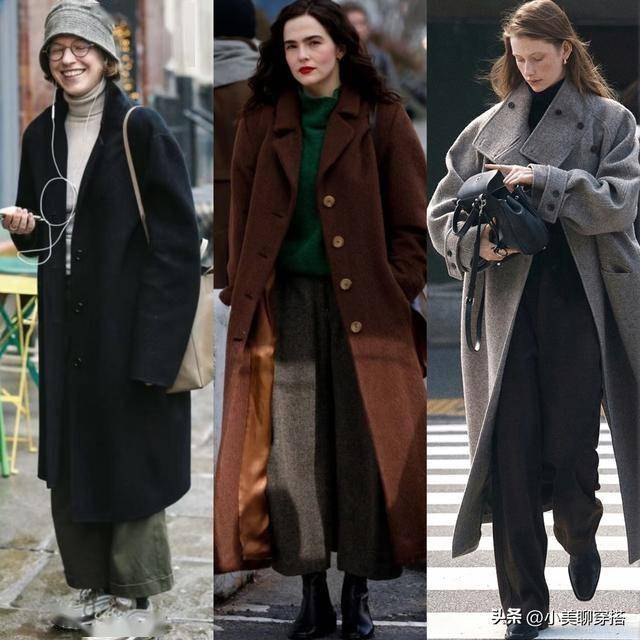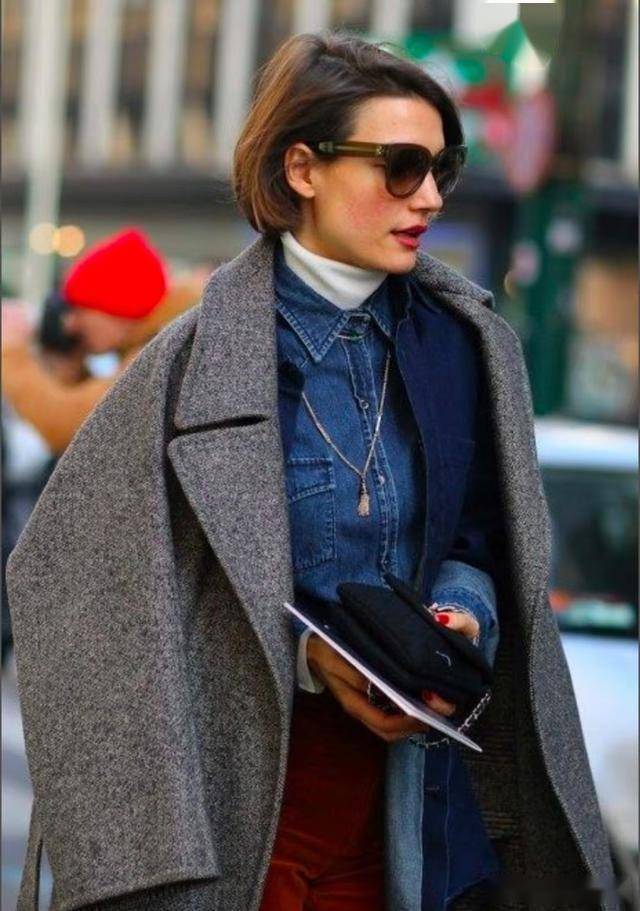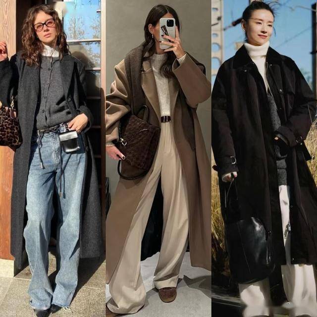 灰色大衣或是咖色大衣,有着强大的气场,这时候可以配一件黑色高领毛衣,高级感爆棚。