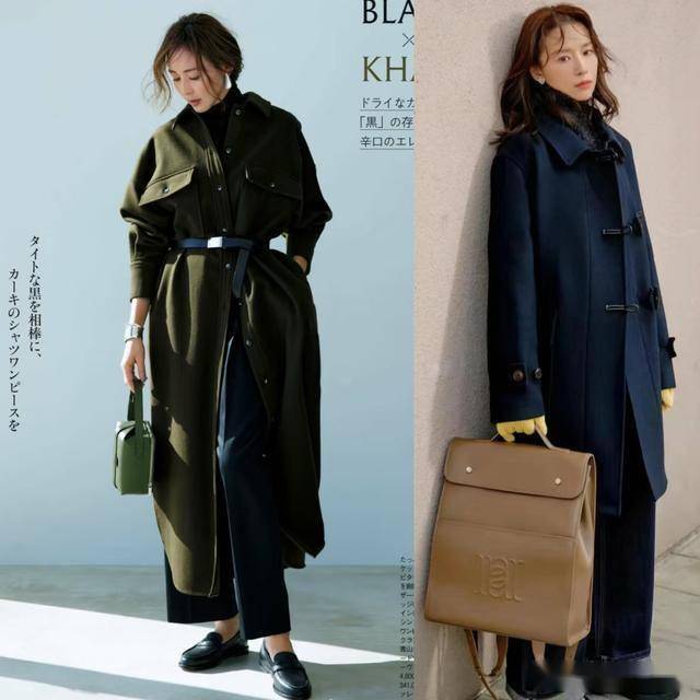 军绿色浴袍款大衣,搭配黑色高领毛衣,配色更复古高级,又透着利落干练的气质,上班穿很有档次。