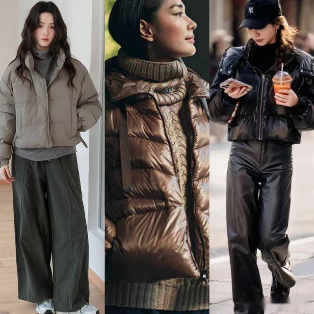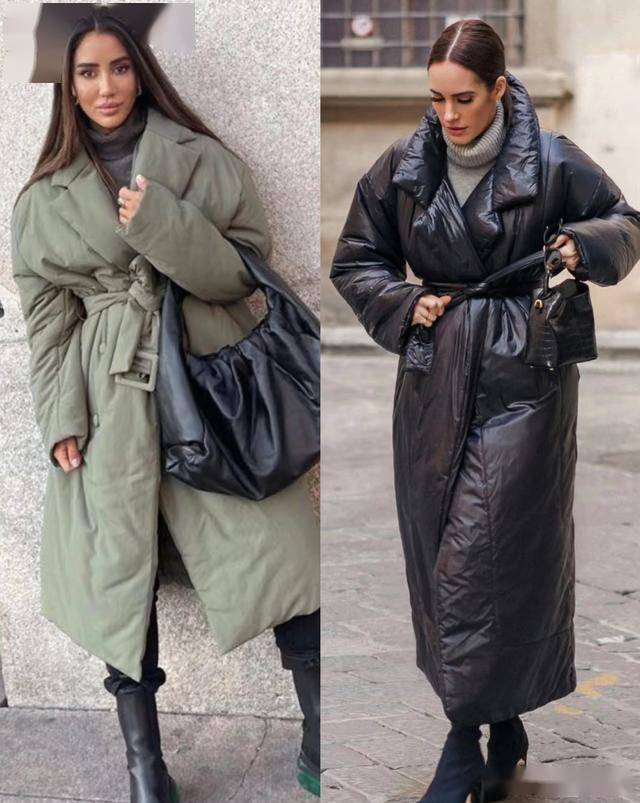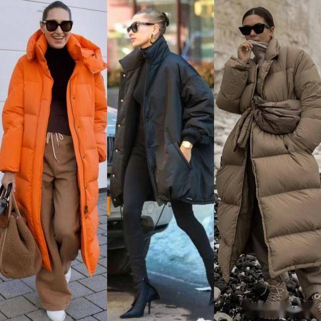 想要显瘦,长款的羽绒可以搭配黑色修身的高领毛衣,显得脖颈更修长纤细,搭配宽松的羽绒时,给人一种衣服宽人瘦的效果。