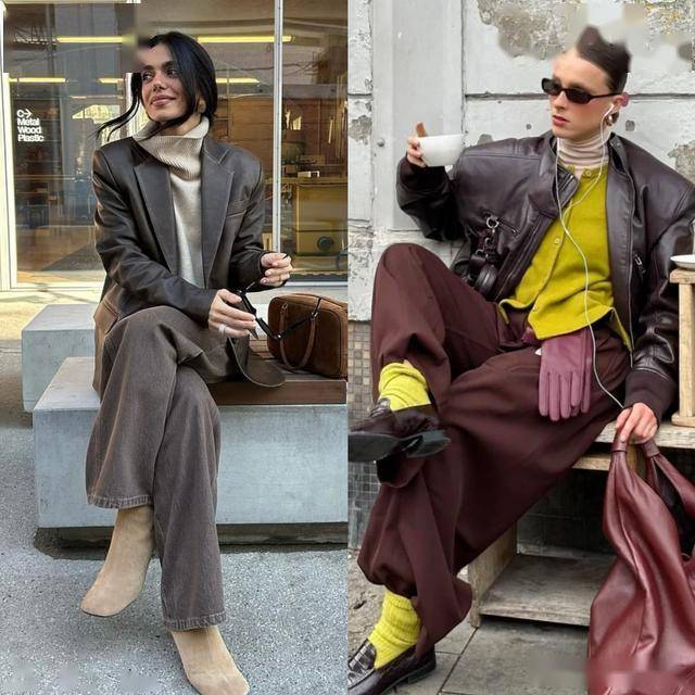 喜欢复古情调的女生,可以尝试咖色大衣搭配墨绿色的高领毛衣,配色非常复古,有一种旧电影走出来的女主的韵味,很好看。