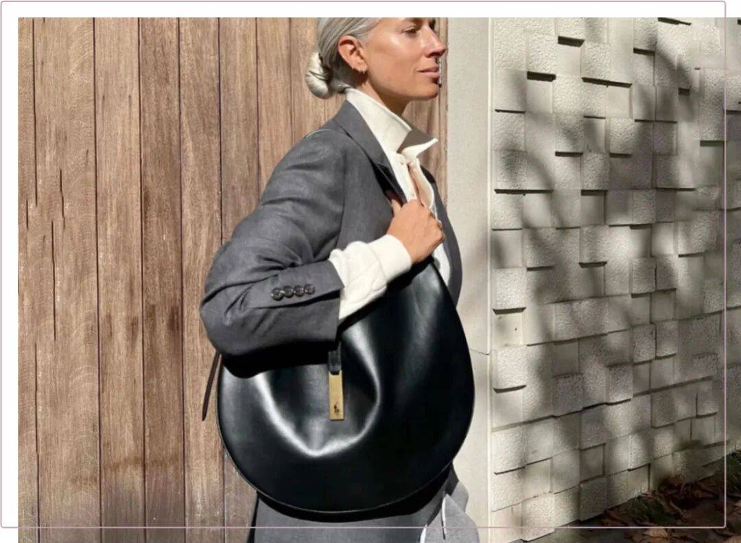 ID系列还有一只半月形皮革肩包大家或许已经很熟悉了,我个人尤为喜欢它的横版迷你款,堪称“秋冬氛围感之神”。Gigi更是将黑金配色示范到了天花板的级别。