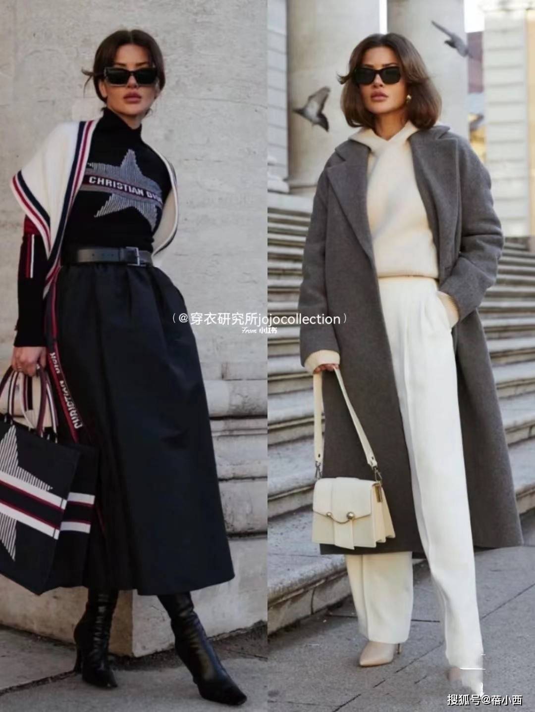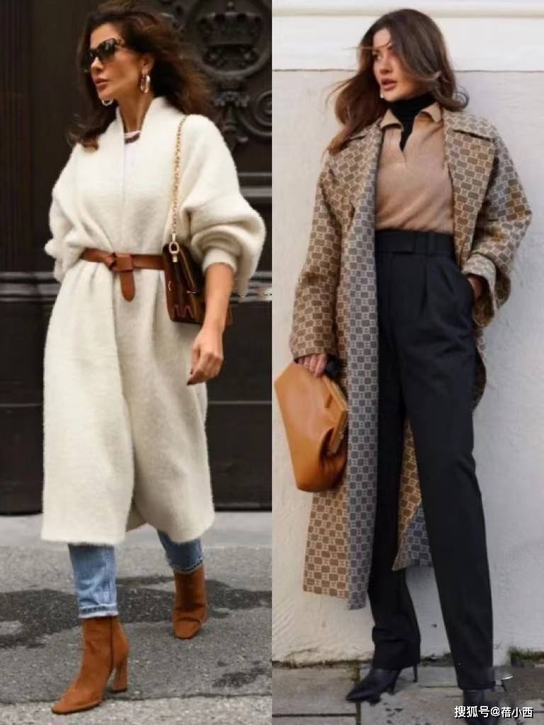 软硬结合是非常经典的思路,比如这种硬挺的毛呢大衣,就很适合搭配柔软的针织衫,可以通过材质上的对比增加搭配层次感,还降低了臃肿感,让你的搭配看起来更显瘦。下半身配一条轻薄的丝袜和打底裤,便能够降低整个搭配的厚重感。