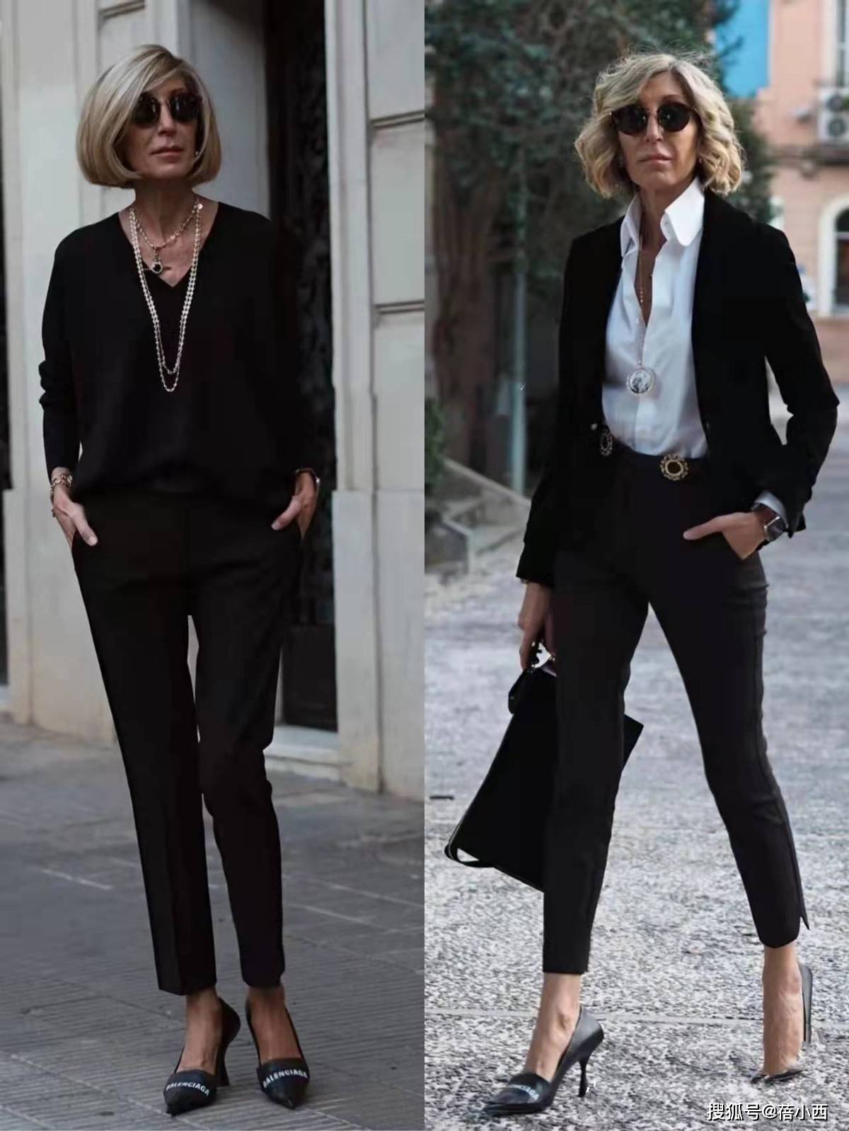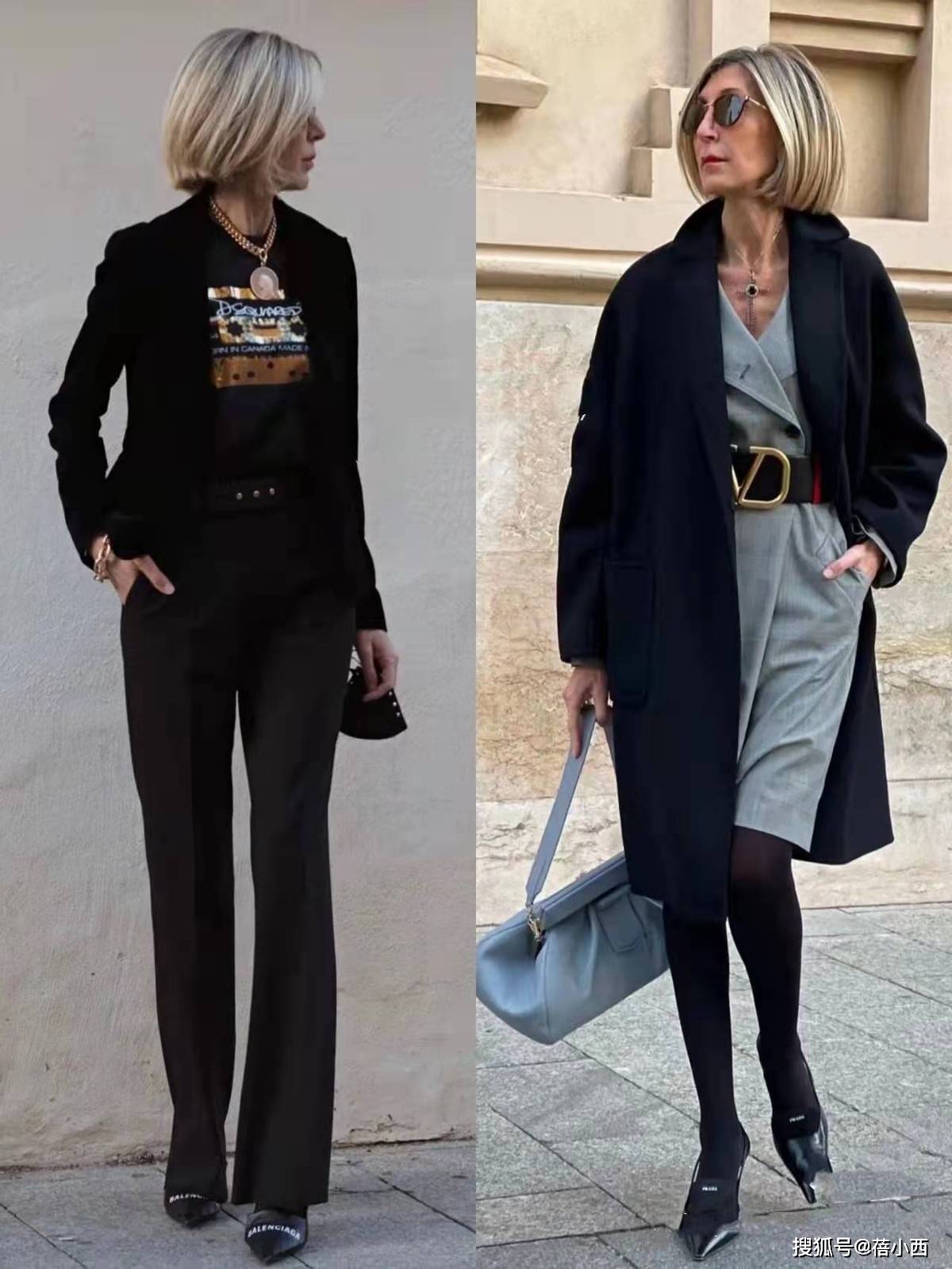这个五十岁的姐姐很少穿鲜艳刺眼的颜色,她的穿搭主色调是黑、白、灰、米、驼、藏蓝这些经典的中性色。这些颜色自带高级滤镜,相互之间搭配和谐,几乎不会出错。比如黑白灰三色之间的组合,全身都是柔和的色调,绝不喧宾夺主。这种统一的色彩语言,让她的整体造型显得格外干净、清爽、有格调。