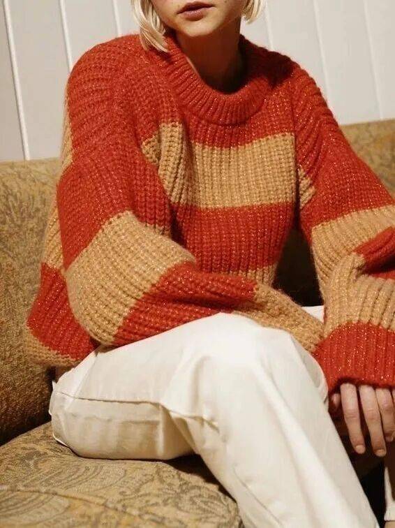 这种毛衣自带休闲的运动感,搭配一条简单的白色休闲裤或者牛仔裤,整个人看起来就会很清爽,一点都不沉闷。
