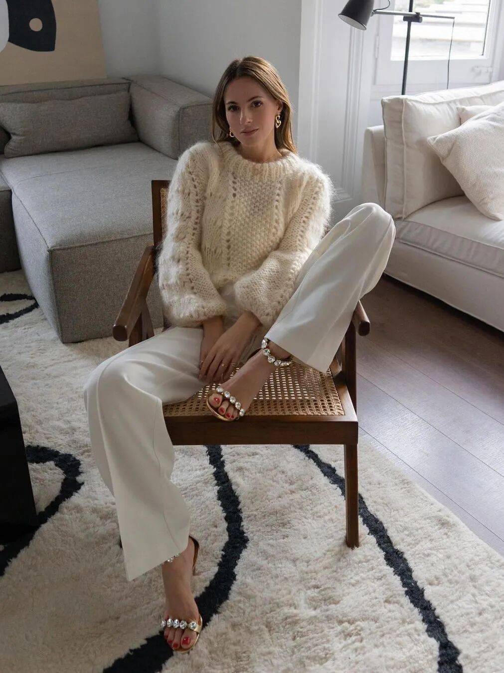 白色绞花:在力量与柔美间自如切换,搭配焦糖色阔腿裤,散发知性优雅的高级魅力。