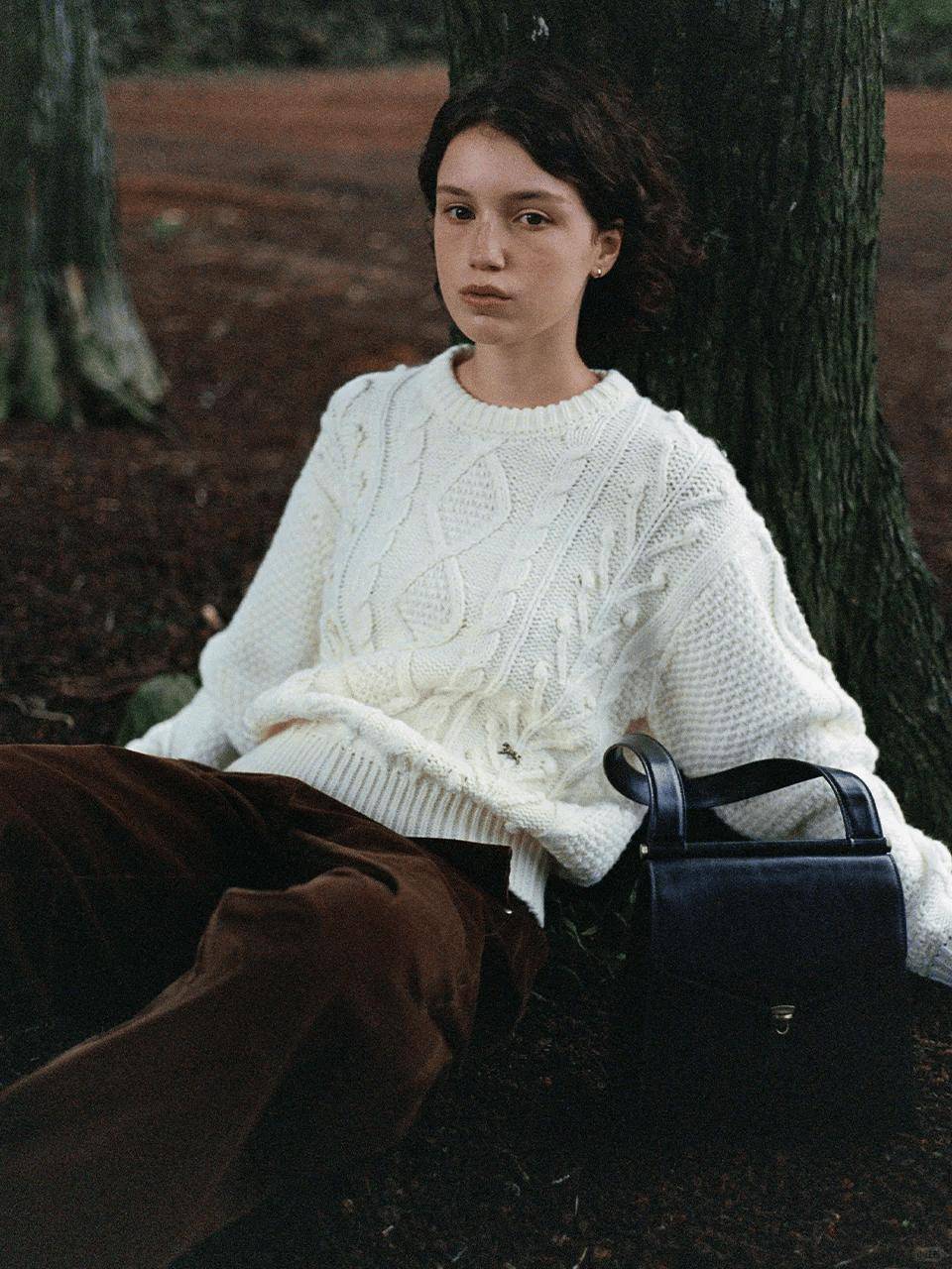 2. 复古绞花毛衣|细腻肌理,温柔力量
