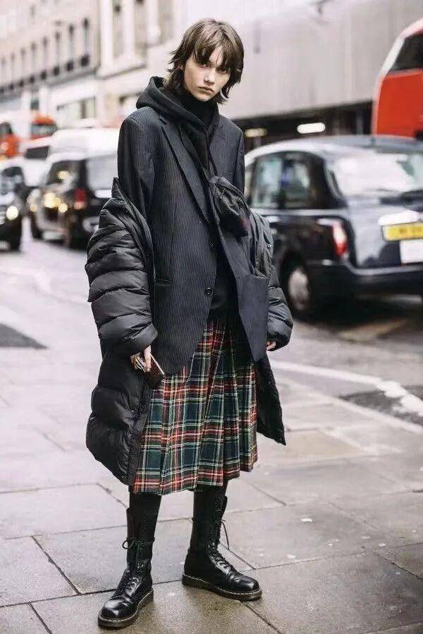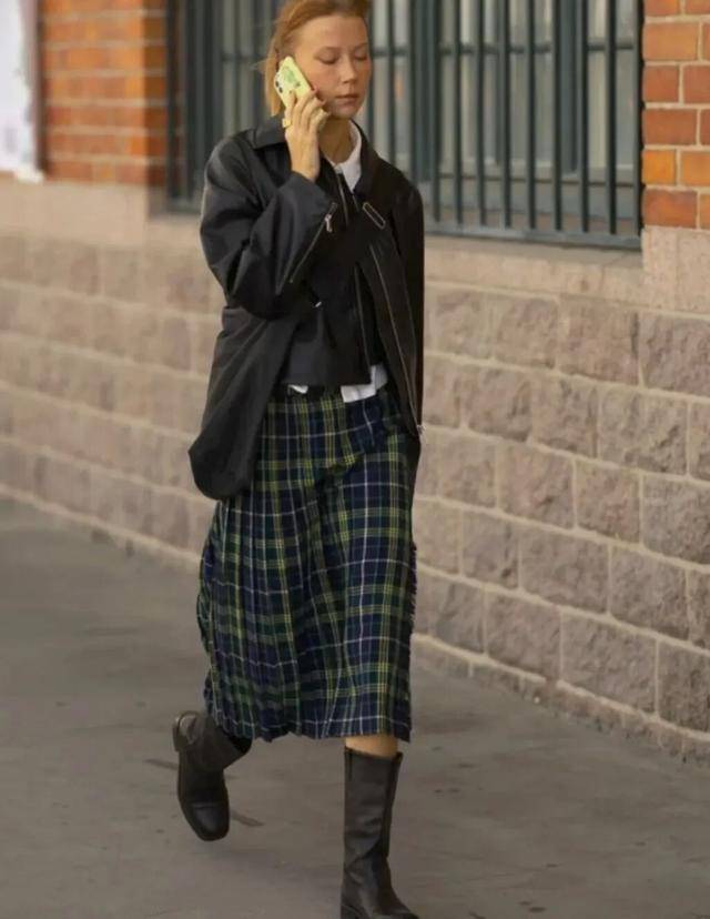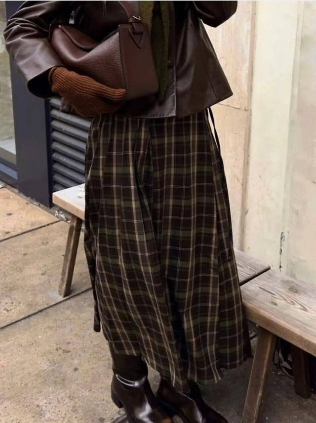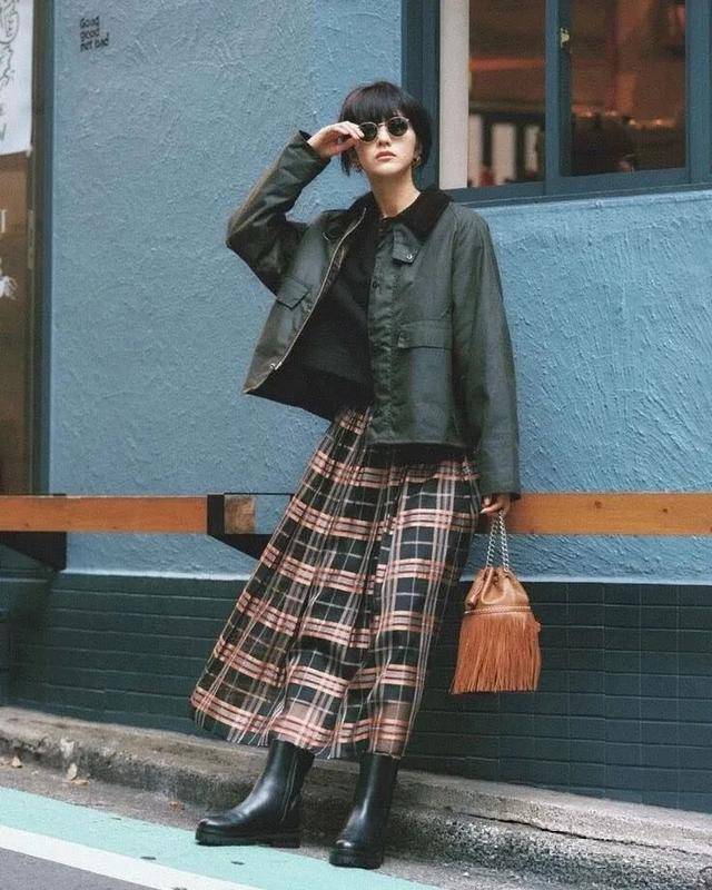 冬天穿一条格子半裙,不像纯色裙子那么单调乏味,但又不像碎花裙那么热闹喧嚣,上衣搭配中性风的复古夹克,就能让你在寒风中构筑起自己的小宇宙,复古却不陈旧,柔美,但又不会过分甜腻。