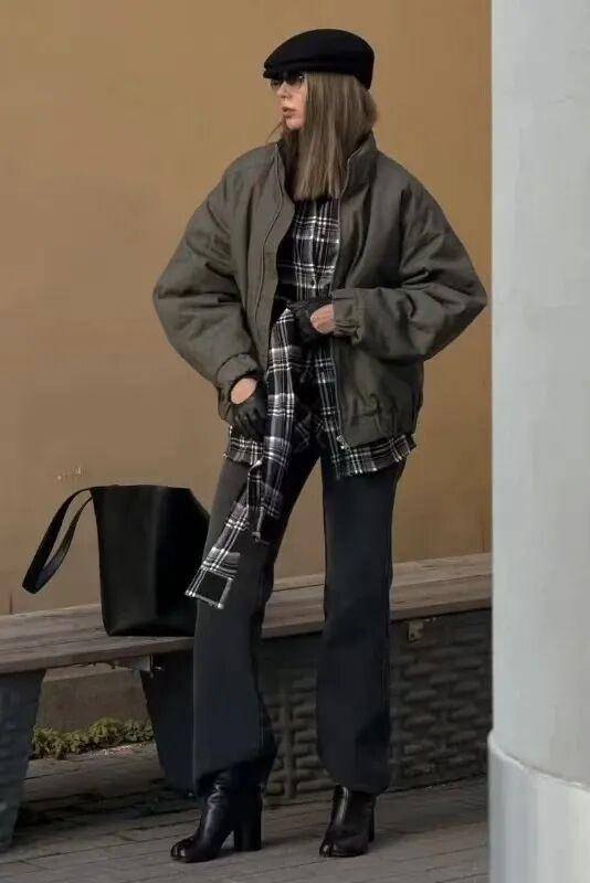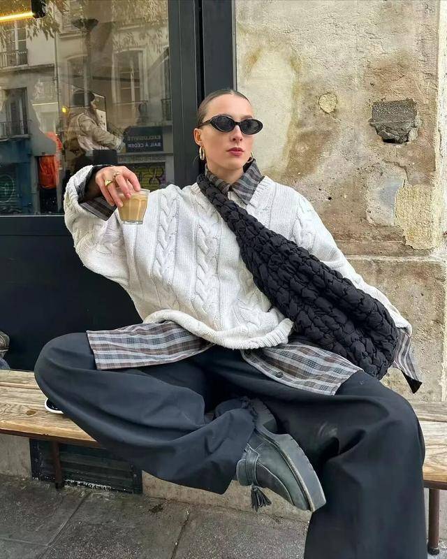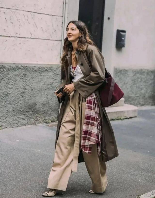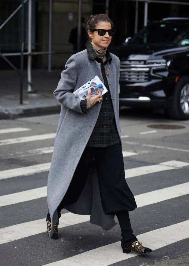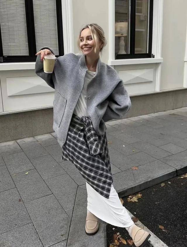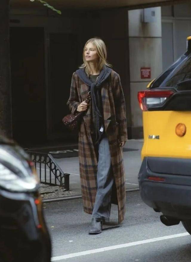 柔软的棉质格纹随着步伐轻轻摆动,仿佛把一份轻松随意与活力系在了身上,既打破了冬日着装的沉闷,又巧妙传达出一种洒脱不羁的时髦态度。