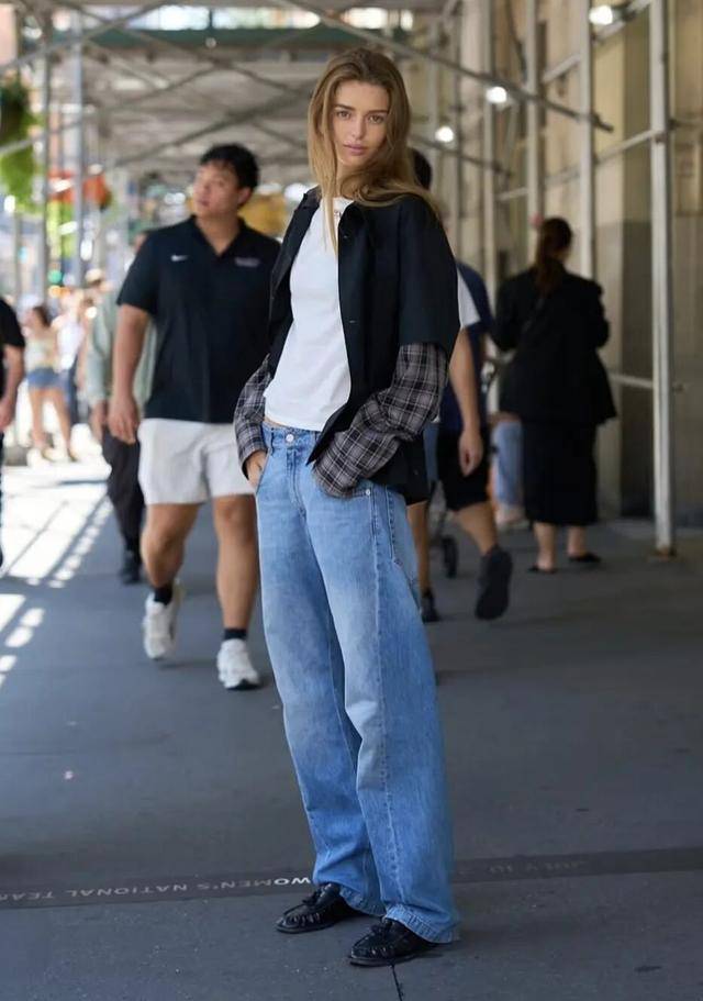 格子衬衫化作腰饰也是时髦精们很爱用的一招。将一件格子衬衫绑在腰间,可以瞬间提升腰线,为造型增加层次感。