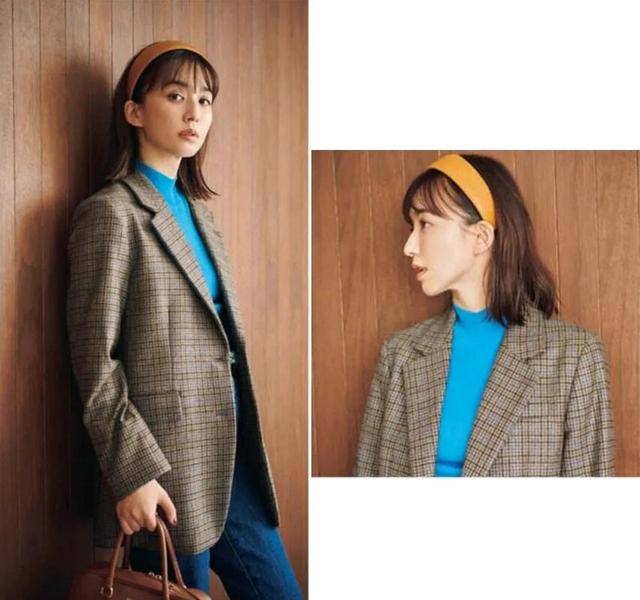 穿格子西装很适合搭配一件色彩鲜明的衣物,比如一件蓝色的针织打底衫,或者一条红色的半裙,亮彩色的加入,不仅能化解老气与严肃感,还能为造型带来活力。