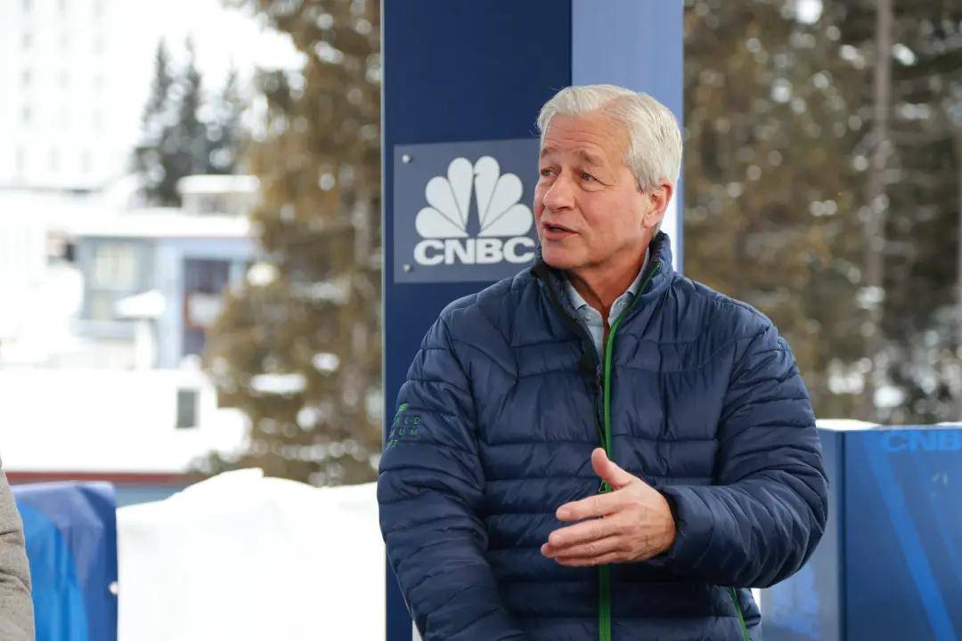 摩根大通CEO杰米·戴蒙也非常喜欢排骨羽绒服,袖子处的“World Economic Forum”绿色刺绣,还暴露了是达沃斯发的工服。