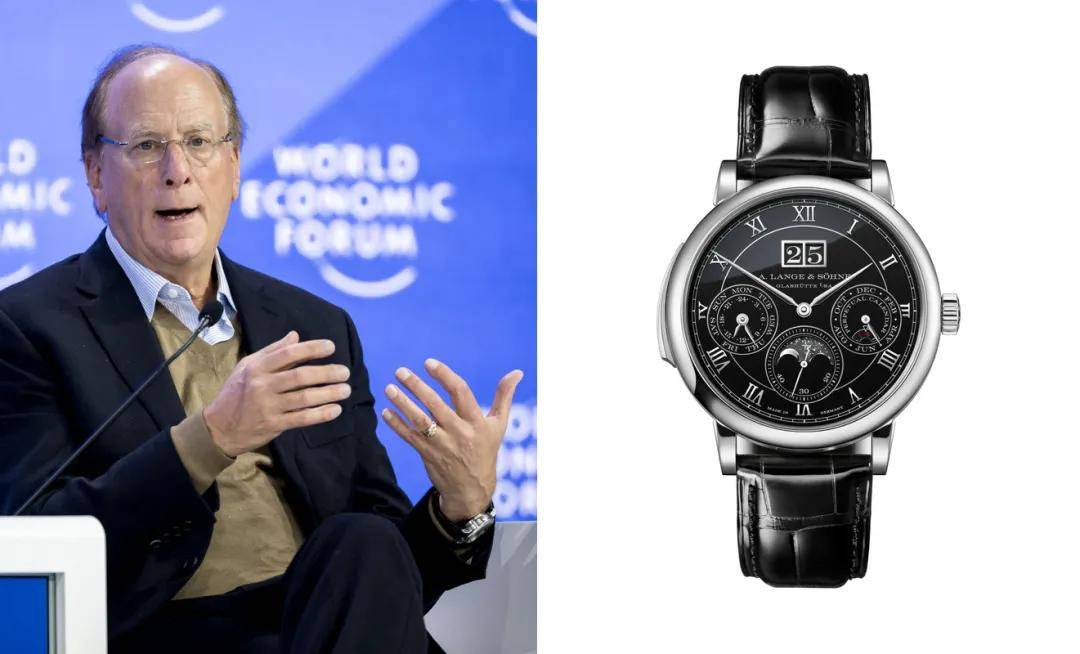 贝莱德负责人Larry Fink佩戴他的朗格Saxonia万年历三问表,可以说是企业家必备,黑盘低调大气。