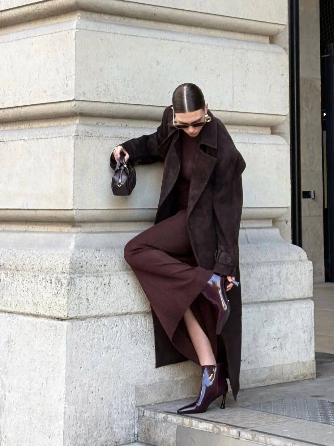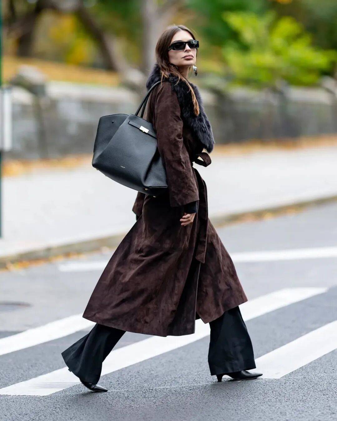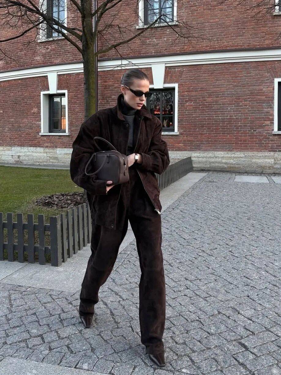 而最值得投资的,少不了一件麂皮长大衣,步履间带起沉稳的弧度,是岁月沉淀后的从容。