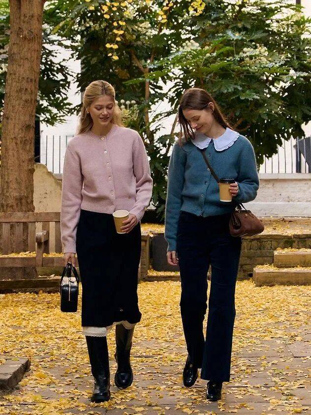最不能少的,是那件温柔色彩的奶奶开衫,淡鹅黄、薄荷绿或奶油杏,扣子是哑光的树脂或贝壳材质,随意搭配裙装或裤装,那份不费力的慵懒与文艺感,立刻浮现。