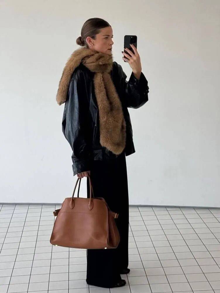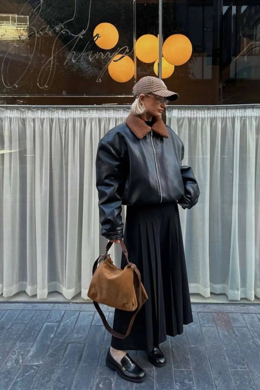 还有及膝的皮风衣或皮大衣,则自带气场,用流畅的线条塑造出整体的洒脱与力量感,赋予穿着者自信与风格态度的陪伴。