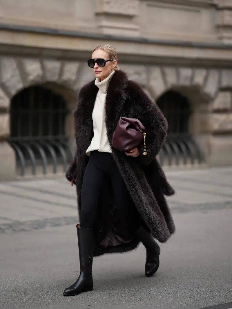 短款的机车皮夹克,搭配连衣裙,是甜酷的平衡;宽松的皮毛一体夹克,厚重而温暖,搭配简单的牛仔裤与靴子,便是冬日里最帅气的女人。