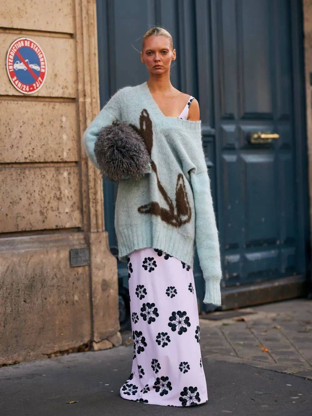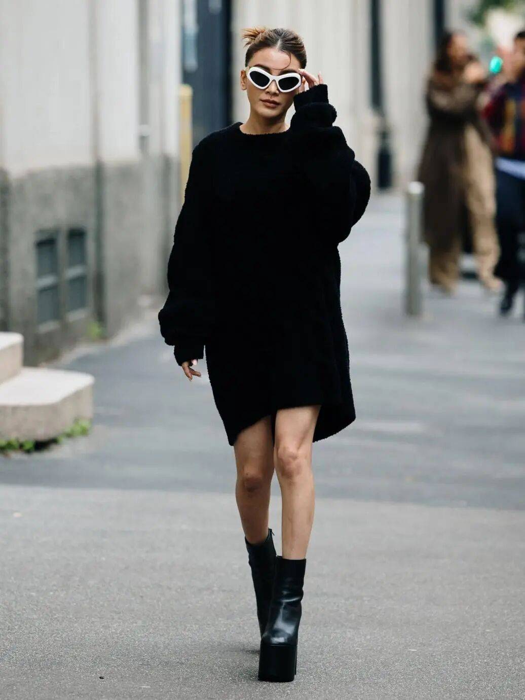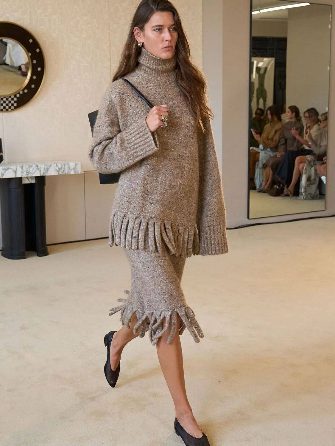 长毛衣,也可以很吸睛。