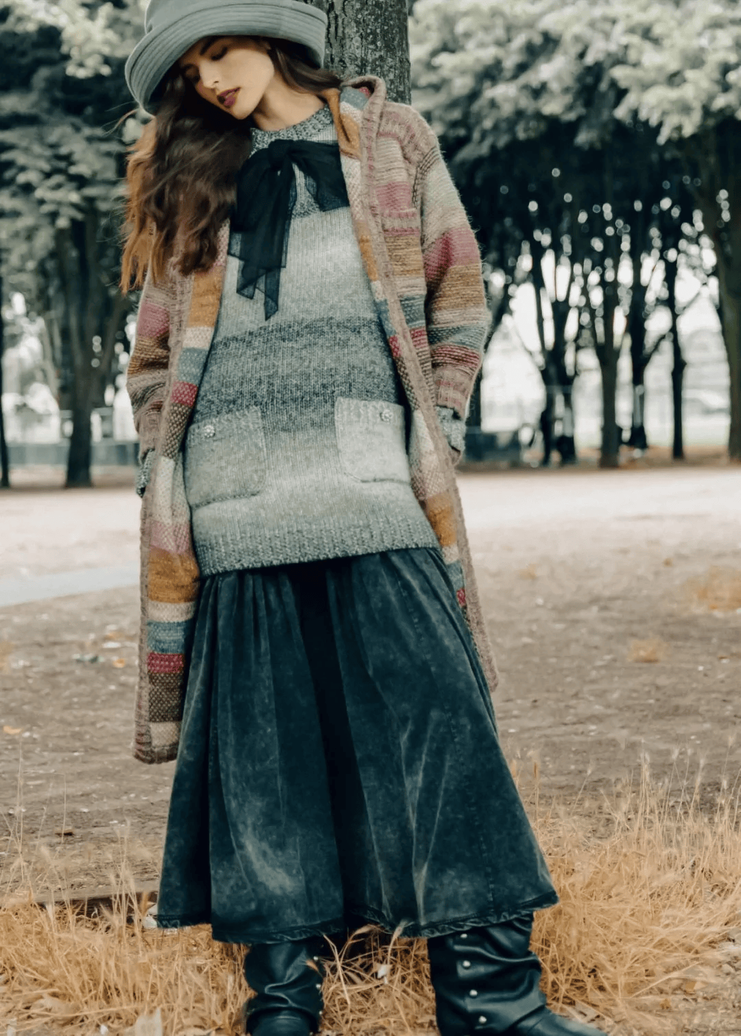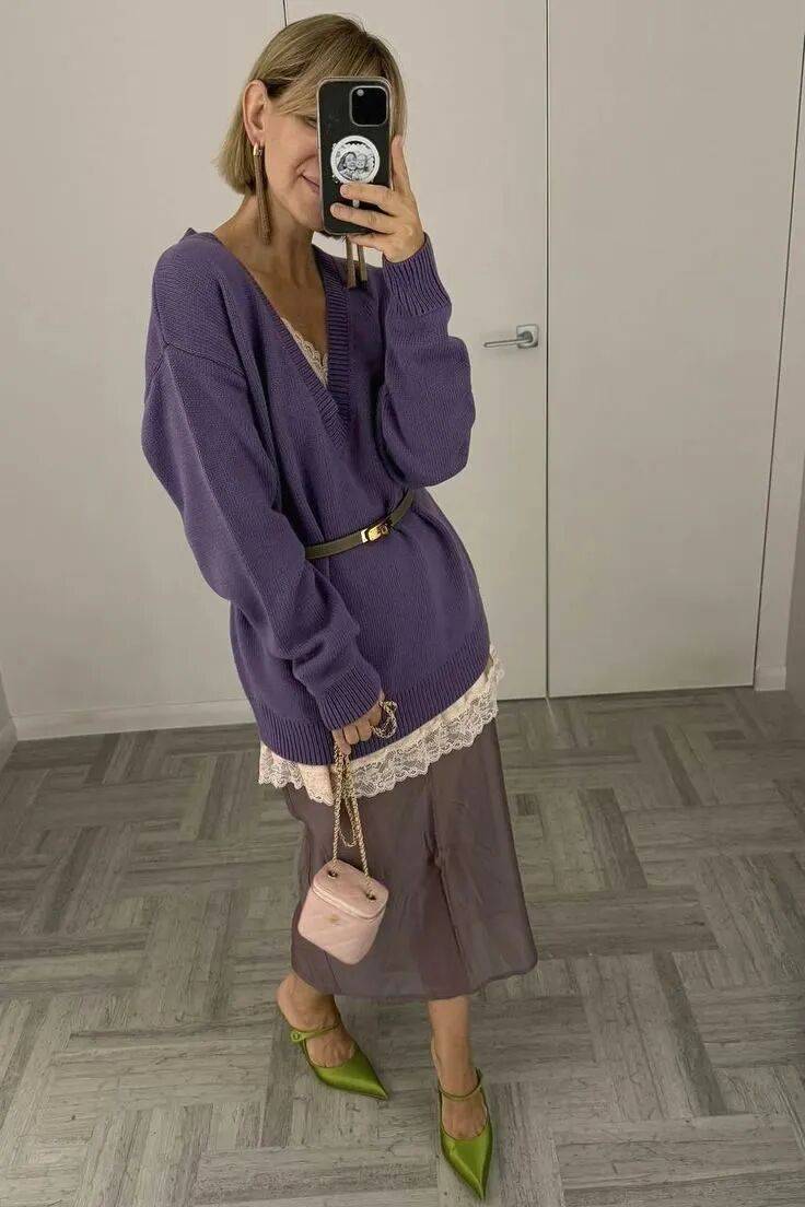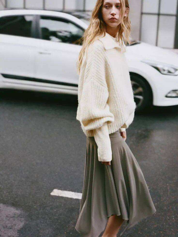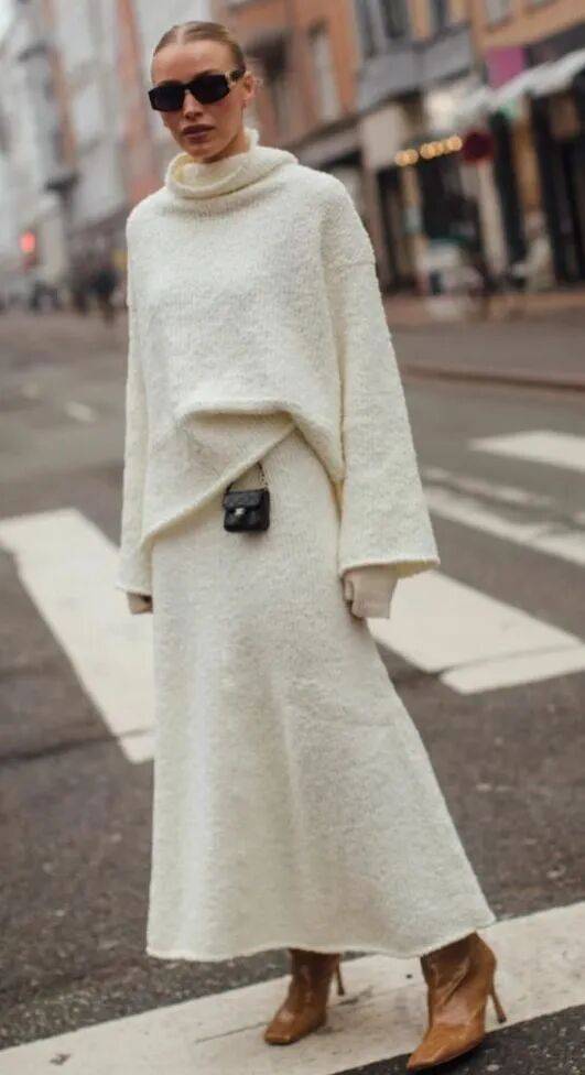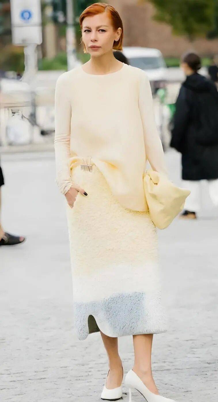 穿长毛衣,半裙要柔软。