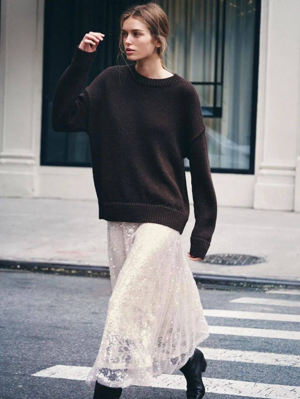 穿长毛衣,半裙要轻盈。