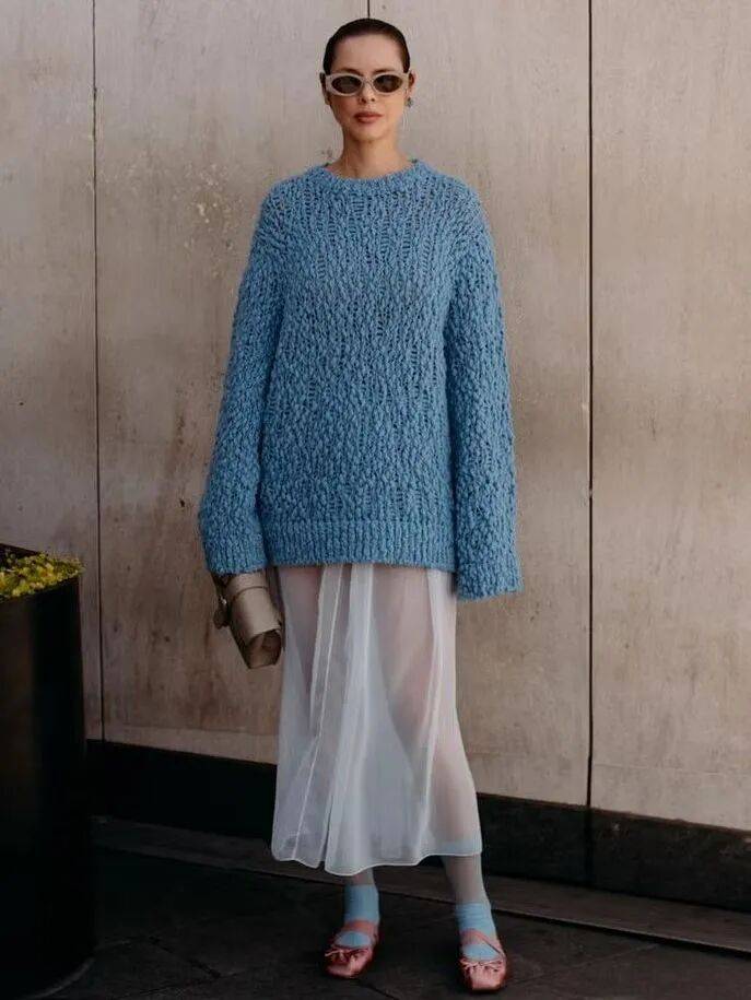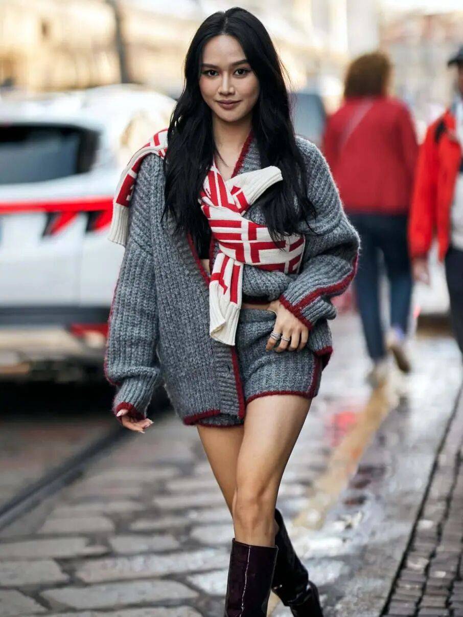 而懂得用“长毛衣”来搭配,