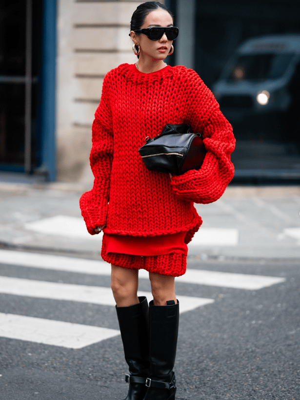 穿长毛衣,巧思还可以再吸睛一点。