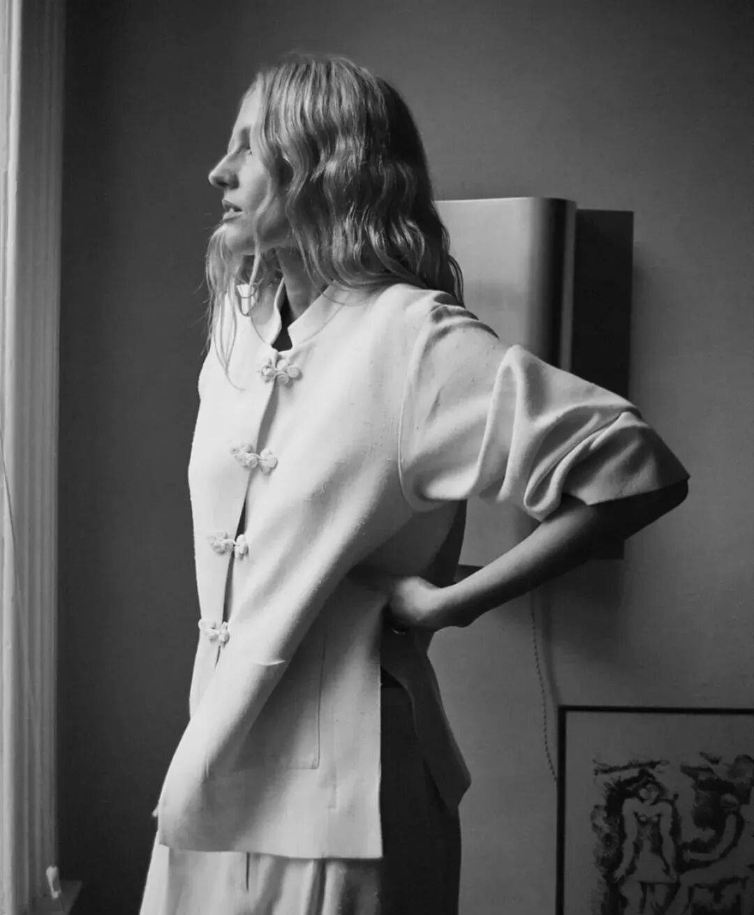 不过它并没有使用传统盘扣的繁复纹样,而是将它调整得更为简练,小巧精致不抢风头,却让剪裁更具记忆点,一下就让它区别于其他极简北欧品牌。