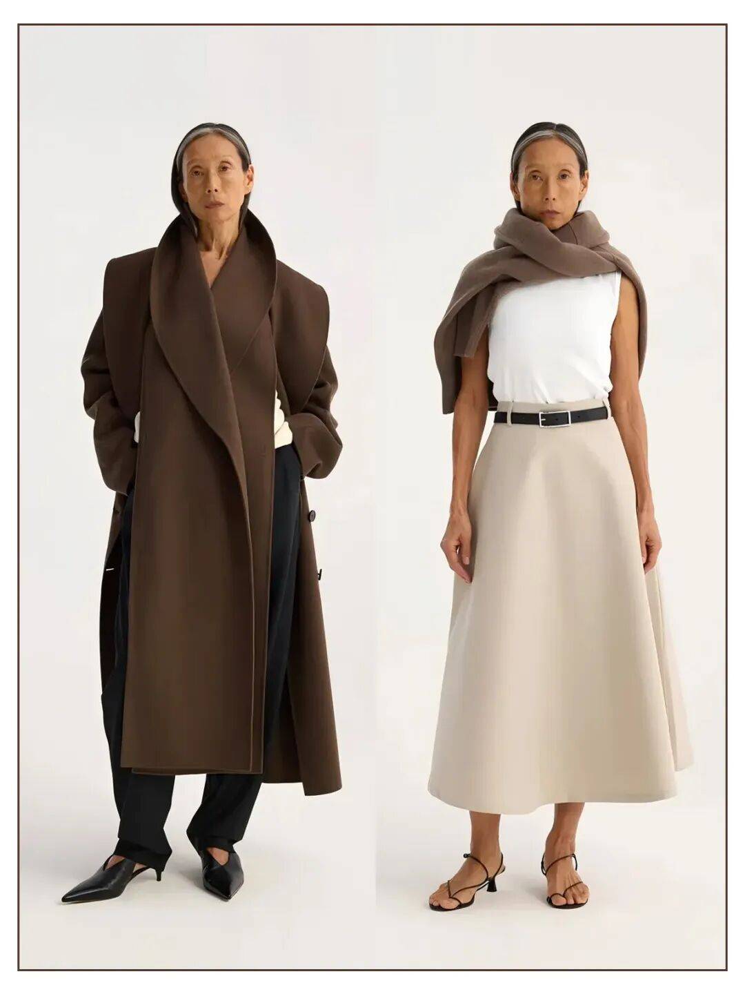 但漏斗领和盘扣只是RÓHE的出圈名片,它能被Lyst评为“女生一生必买”,更在于全系列都经得起日常考验,大多数都是普通人的衣橱刚需。品牌很擅长重新定义经典款,把基础单品做出不普通的穿感样子,还是不限年龄的那种。