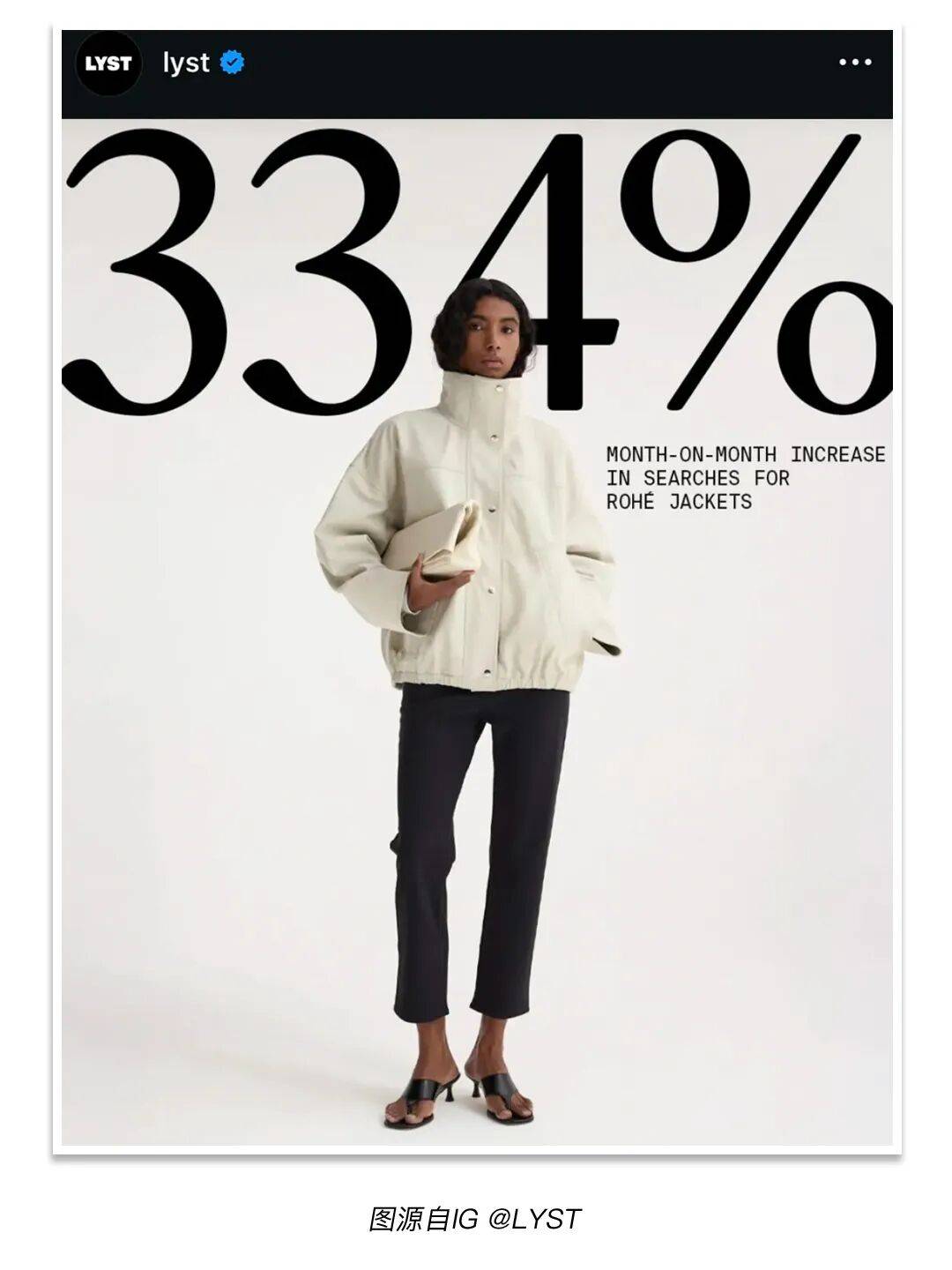 就是这样一件“看着简单,细节全是门道”的漏斗领,先在时尚编辑圈悄悄火了。Lyst数据显示,RÓHE漏斗领单品的月搜索量暴涨334%,品牌整体销量跟着翻了倍。