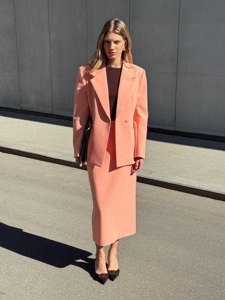 日常穿能平衡感性与理性,一身雾色玫瑰套装,轻松穿出不费力的高级感;搭配柔软外套,还能解锁知性文艺的知识分子风。