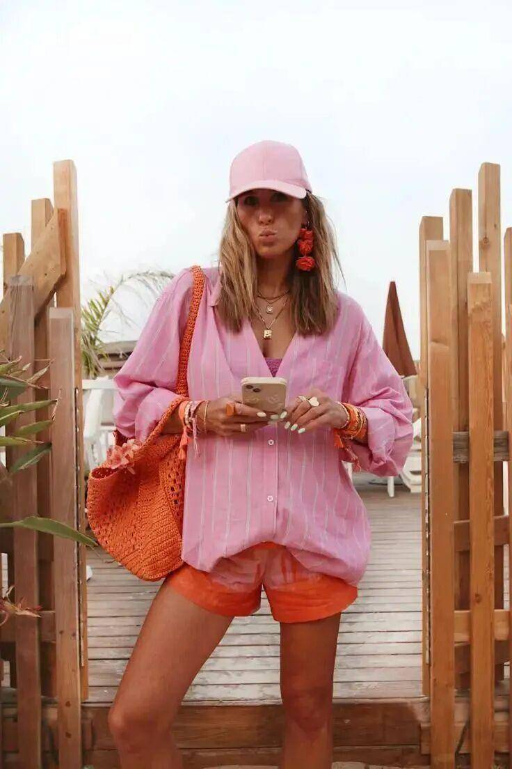 若是想更活泼,搭配暖色调单品做撞色,瞬间解锁元气满满的假日氛围。