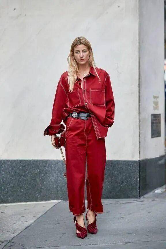 驾驭这款色彩很简单,熔岩红衬衫配阔腿裤,职场气场全开;一条简约的熔岩红缎面吊带裙,搭配金属饰品,轻松成为全场视觉中心。