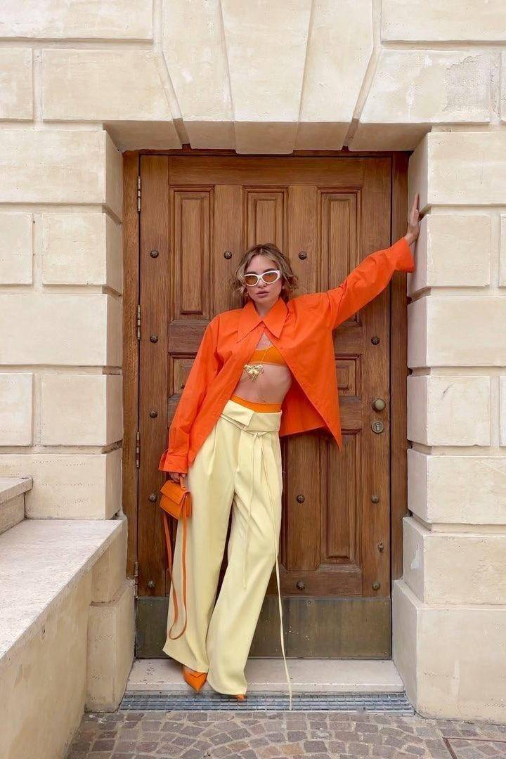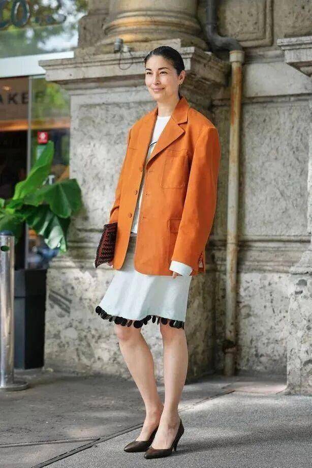 甜瓜色是饱满鲜活的暖橙调,像裹着阳光的甜香,元气又有感染力,一上身就能点亮整体造型。