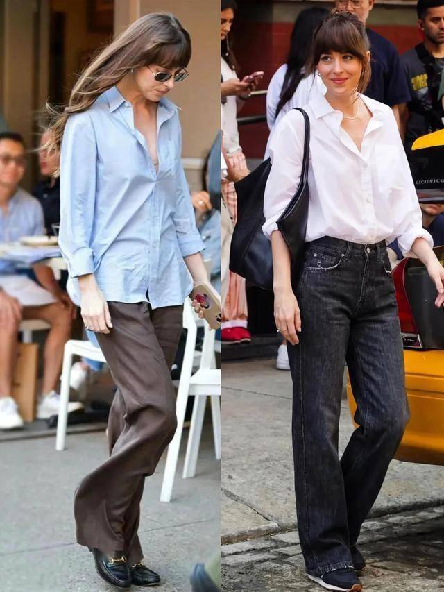 在时尚圈,总有一类人能把最朴素的单品穿出高级感,达妹(Dakota Johnson)就是其中的代表。翻看她的街拍,你会发现她的衣橱里没有夸张的设计或繁复的装饰,白衬衫、直筒牛仔裤、西装外套、背心……这些我们每个人都有的基础款,在她身上却总能焕发出独特的法式慵懒魅力。
