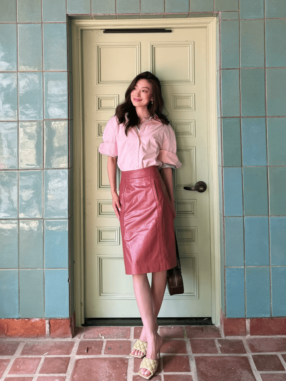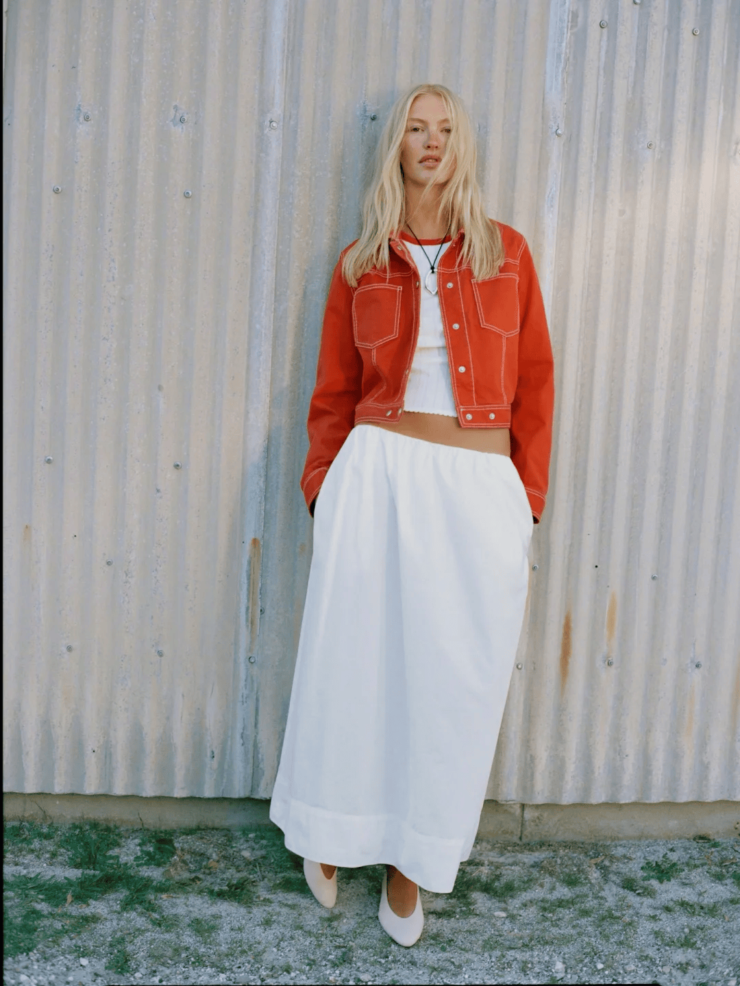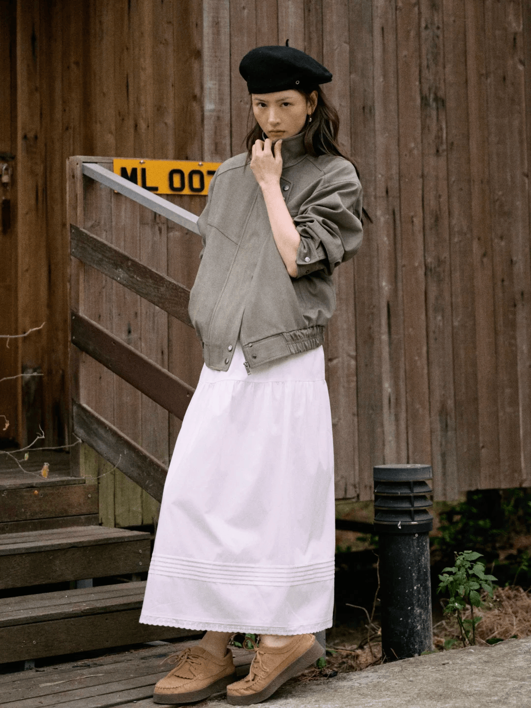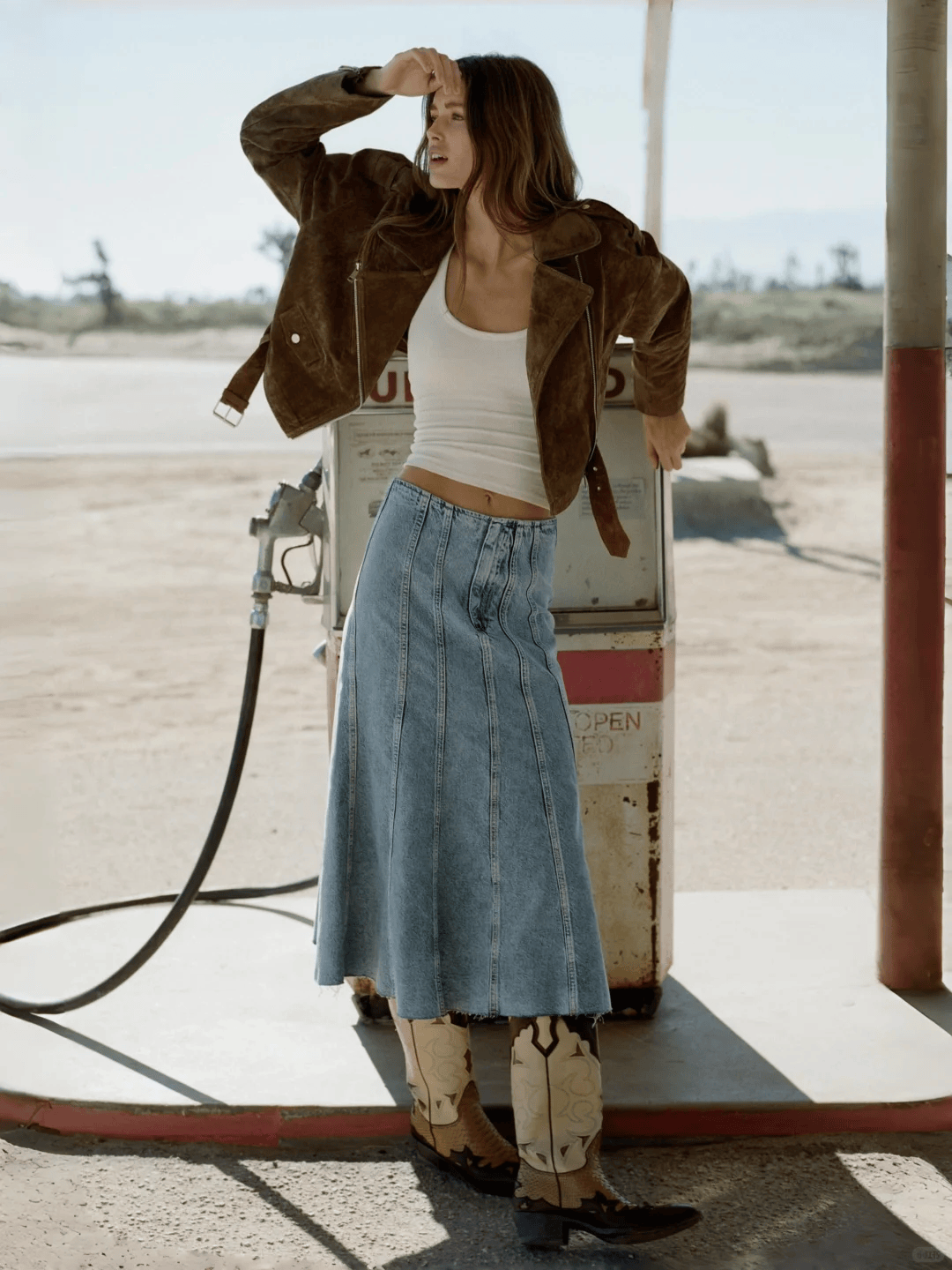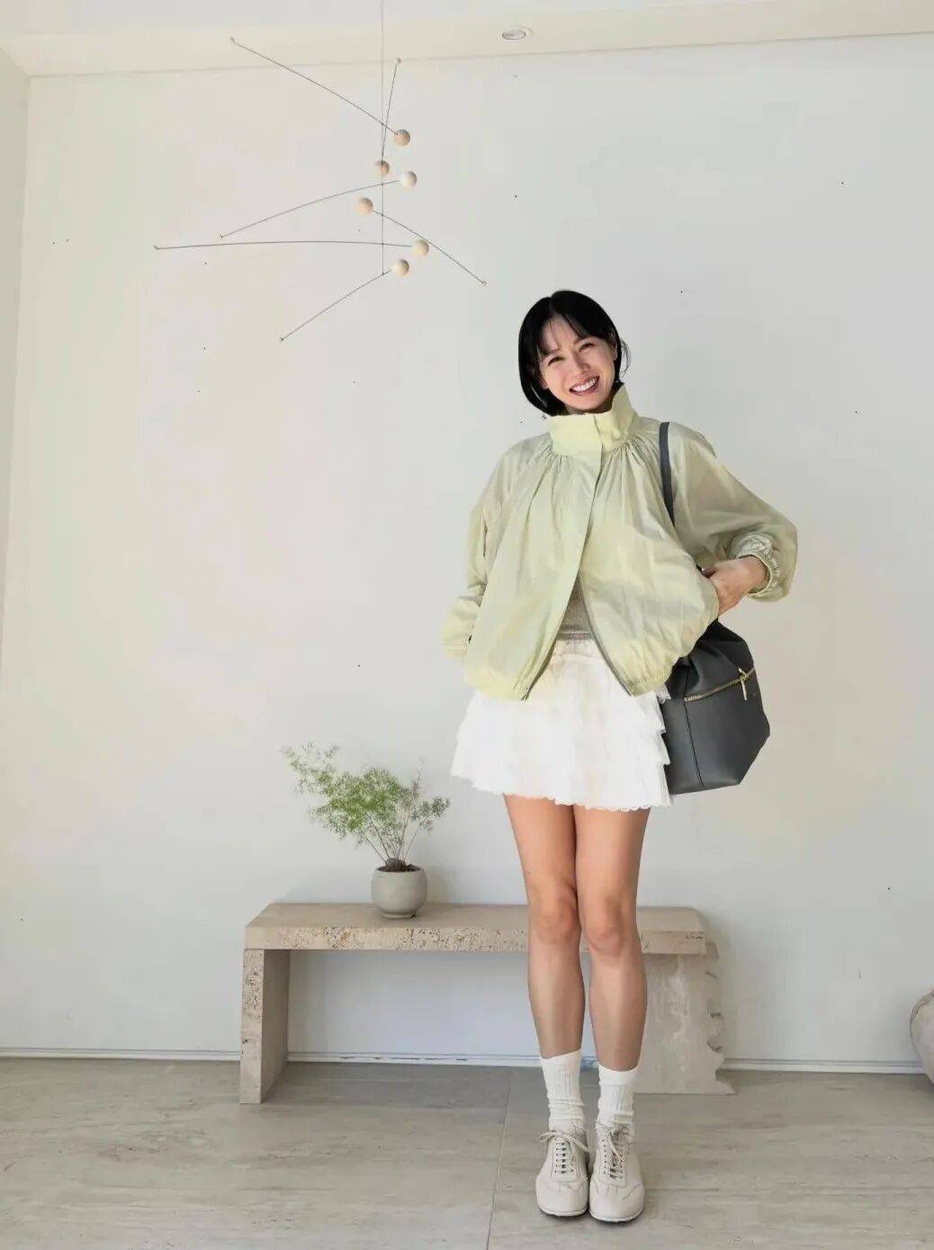 短款夹克+高腰裙是显高的黄金法则。